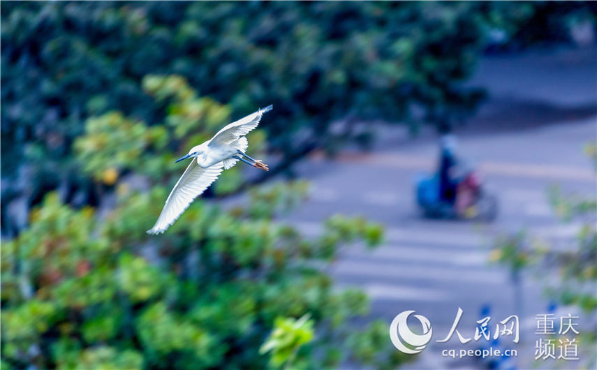 白鹭在重庆市南川城区上空飞翔起舞。瞿明斌 摄