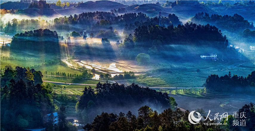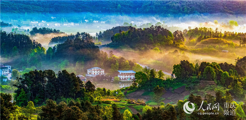 晨曦中的重庆市南川区大观镇铁桥村梦幻如画。瞿明斌 摄