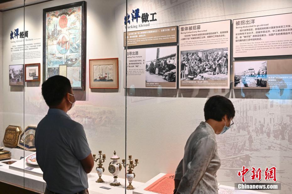 7月9日,广东省广州市,参观者在广州华侨博物馆内参观。当日,广州华侨博物馆开馆试运行。该博物馆选址于五仙门发电厂旧址,基本陈列展厅以“广州华侨与历史贡献”为主题,设立“华侨史话”“家国情怀”“情暖侨心”“记住乡愁”等四个部分,馆藏实物和史料逾1.6万件(套)。 中新社记者 陈骥旻 摄
