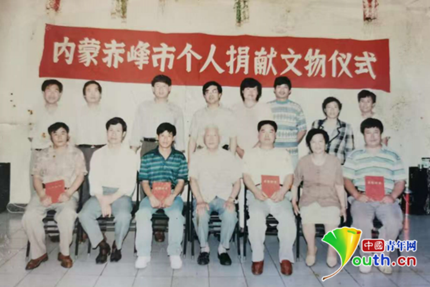 1999年内蒙古赤峰市个人捐献文物仪式合影,徐鹏志(第一排,右三)。
