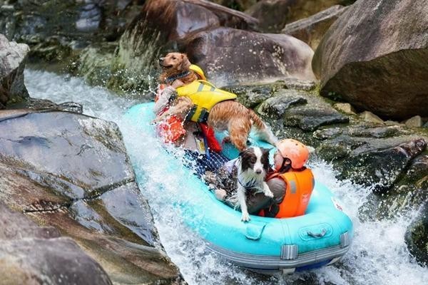“伴旅PawTrust”在浙江省杭州市桐庐县组织“人宠激情漂流之旅”。受访者供图