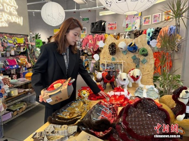 2月2日,湖北武汉一家人宠生活馆主理人钱晶正在整理宠物服饰。武一力 摄