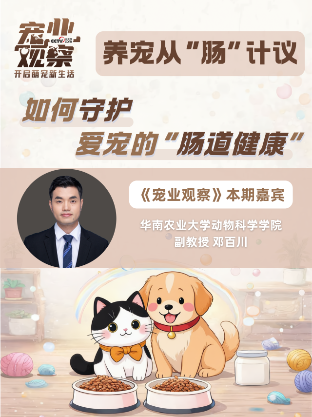 为传递科学的肠道养护知识,破解宠主在日常观察、产品选择及问题应对中的困惑,日前,《宠业观察》“毛孩子的守护人们”专栏,邀请华南农业大学动物科学学院副教授邓百川,结合其专业研究,分享日常养护要点,助力养宠人科学守护爱宠肠道健康。