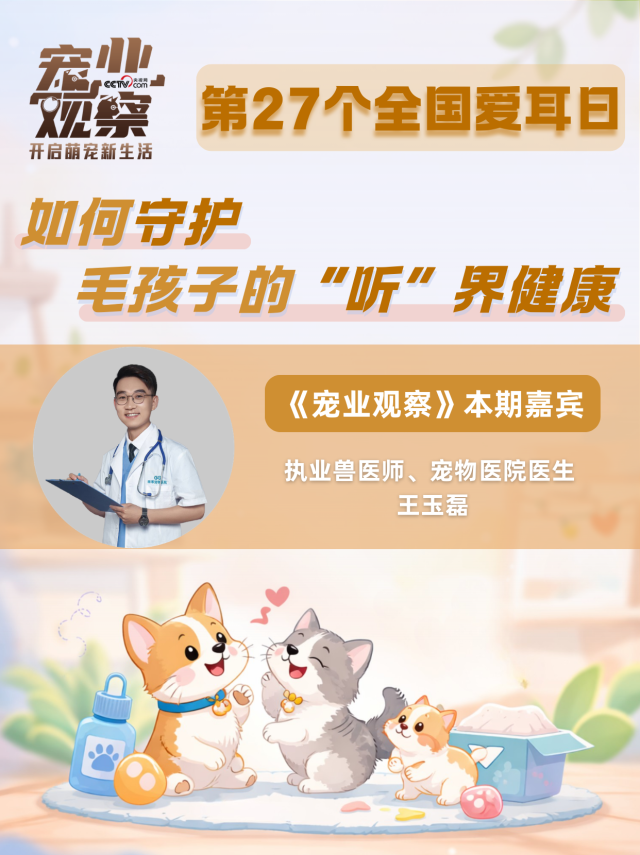 在全国爱耳日这天,《宠业观察》“毛孩子的守护人们”专栏邀请执业兽医师、宠物医院医生王玉磊,结合临床经验,为养宠人拆解宠物耳部护理的误区、要点与应对方案,呼吁从“听懂”毛孩子的细微信号开始,科学守护它们的“听”界。