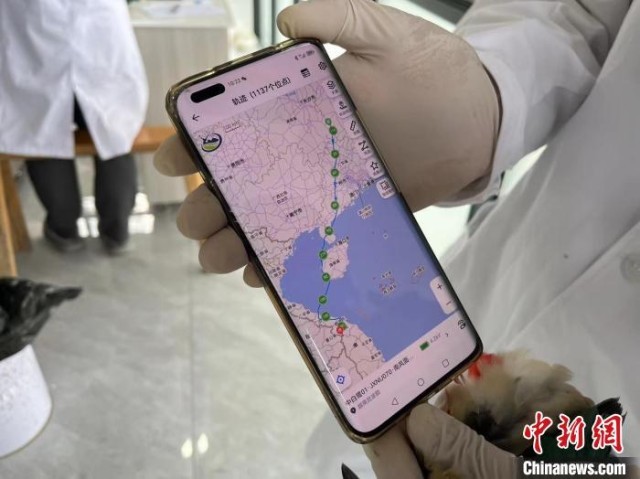 记者在工作人员的手机上看到,每只佩戴了跟踪器的候鸟都有专门的编号,候鸟飞行的点位会以路线图的形式在地图上呈现,一条条候鸟迁徙之路便清晰地在手机上呈现。