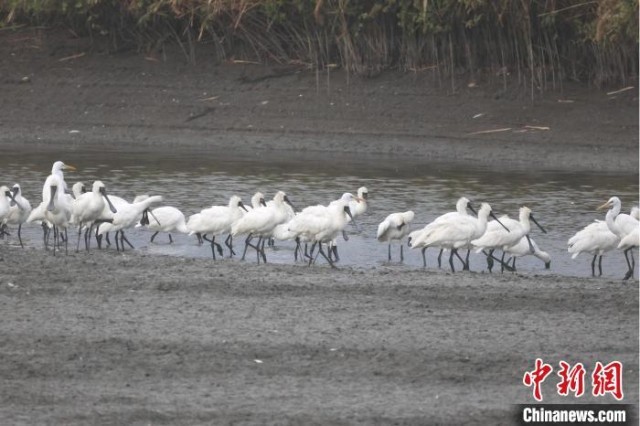 黑脸琵鹭与其他水鸟。广东省林业局 供图
