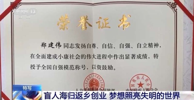 凭借着自立自强的精神,郑建伟荣获2014年“全国自强模范”称号,2023年又作为残疾人代表,出席了中国残疾人联合会第八次全国代表大会。