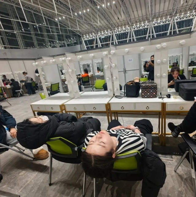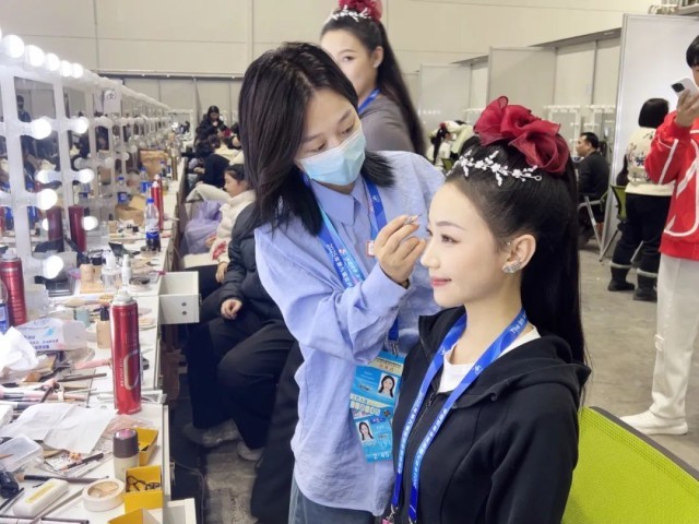 旅游学院师生就在化妆间紧张地忙碌,