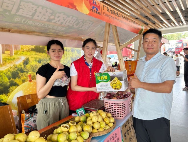 为助力“百千万工程”,广东各路段志愿服务队伍发挥服务区平台优势,搭建农产品展销渠道,把广东各地“土味儿”请上高速。如新台高速合水服务区设置了“我为台山特产代言”农商产品展销台,志愿者通过图文、视频介绍地方风物,吸引旅客驻足聆听选购。阳茂高速联合当地乡村振兴办公室,在阳西服务区搭建了富硒甜薯从田间地头驶向旅客的“直通车”;粤赣高速邀请农户摊主免费入驻和平服务区,丰富了旅客“手信礼”。