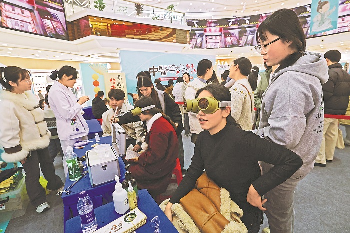 11月22日,安徽省芜湖市镜湖区,安徽省皖南康复医院(芜湖市第五人民医院)举办中医药文化集市,将“流动中医馆”搬到商场,为市民搭脉义诊,宣传中医药文化,让群众在家门口即可享受专业的中医药服务。