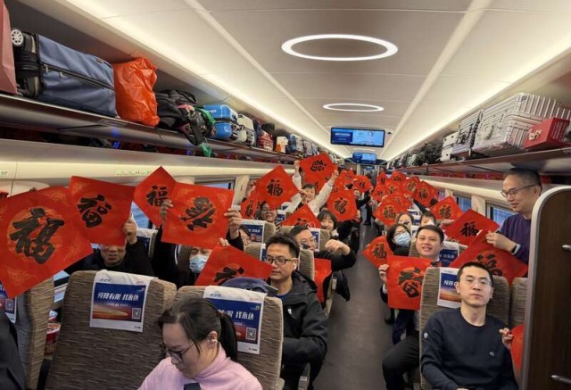中国青年报客户端杭州2月14日电(中青报·中青网记者 李剑平 )今天,103名在浙江省务工的湖南青年,在杭州东站顺利搭乘G225列车,返湘过年。3个小时后,列车广播里响起“列车前方到站——长沙南站”,车厢里又热闹起来,他们带来的不仅是异乡的温暖,更是家乡的思念。