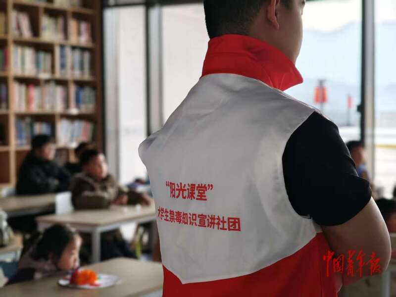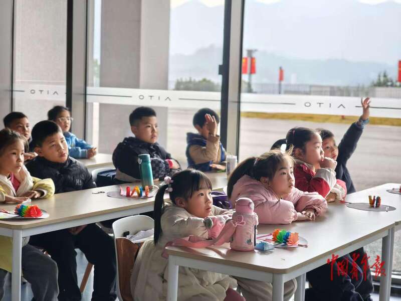 2月10日,重庆两江新区赛力斯问界汽车总部(两江),来自西南政法大学“阳光课堂”大学生禁毒知识宣讲社团的青年志愿者为托管点的小学生宣讲禁毒知识。中青报·中青网记者 耿学清