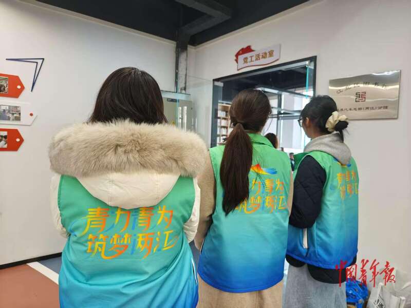2月10日,重庆两江新区赛力斯问界汽车总部(两江),为托管点服务的两江新区青年志愿者。中青报·中青网记者 耿学清
