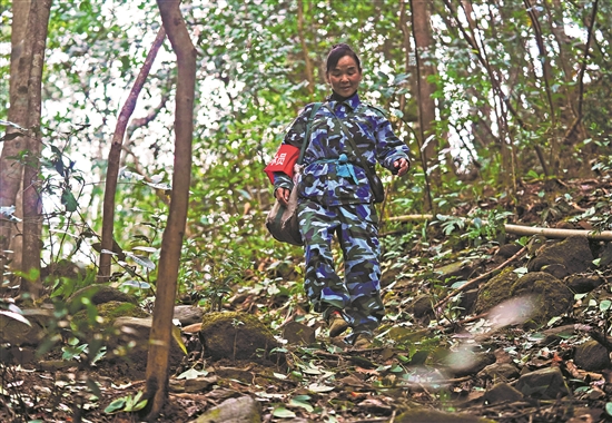 吴忠华看管的3600多亩林地,属于官山国家级自然保护区范围,辖区内原始森林繁茂,珍稀野生动植物资源丰富。除了常规的护林法规宣传、排查火险隐患、制止滥砍乱伐、监控森林虫害外,她还肩负着巡防盗猎、盗采野生动植物等任务。