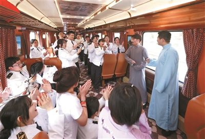 “津旅时光号”自2025年10月30日正式运营以来,迅速成为天津文旅的网红新地标,受到市场广泛关注与游客高度认可。“和传统旅游专列相比,我们打破传统旅游专列‘交通为主、观光为辅’的固有定位,打造的是‘具有交通属性的移动主题乐园’,旅途本身就是核心文旅体验,实现了‘上车即度假,旅途即风景’。”刘洋告诉北京青年报记者,“津旅时光号”作为全国首列沉浸式主题娱乐文旅专列,其“沉浸式体验”也是一大创新,让旅客从“被动观演”到“全程入戏”,实现零距离演艺互动。通过剧情化NPC设计、全场景氛围营造、可参与的互动环节等,让游客“既是观众也是剧中人”,而非被动的观光者。